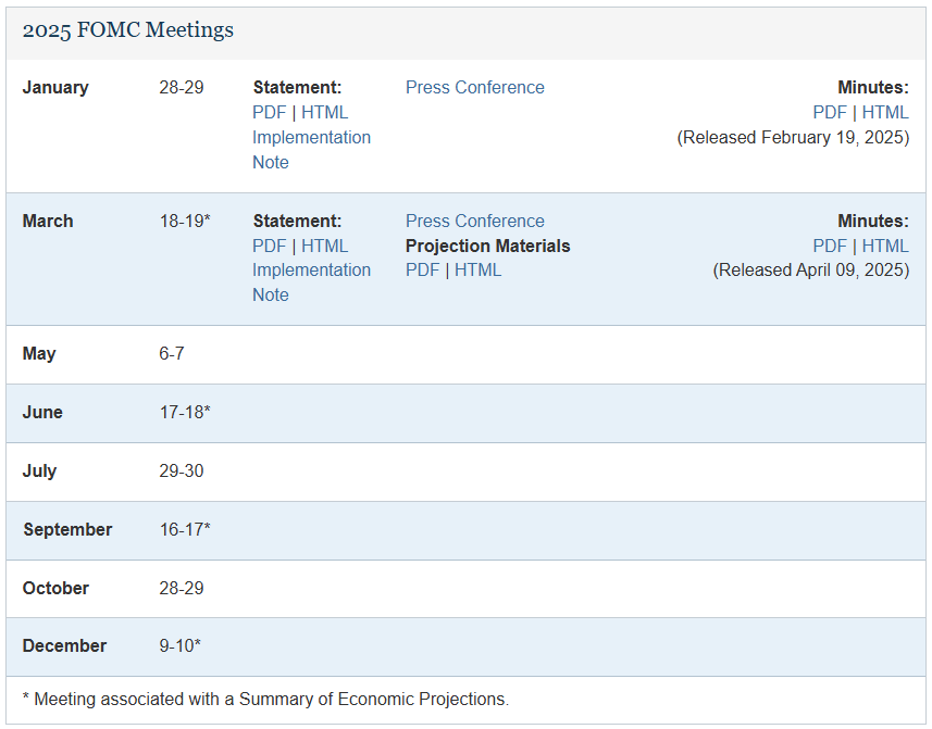 2025년 FOMC 회의 일정